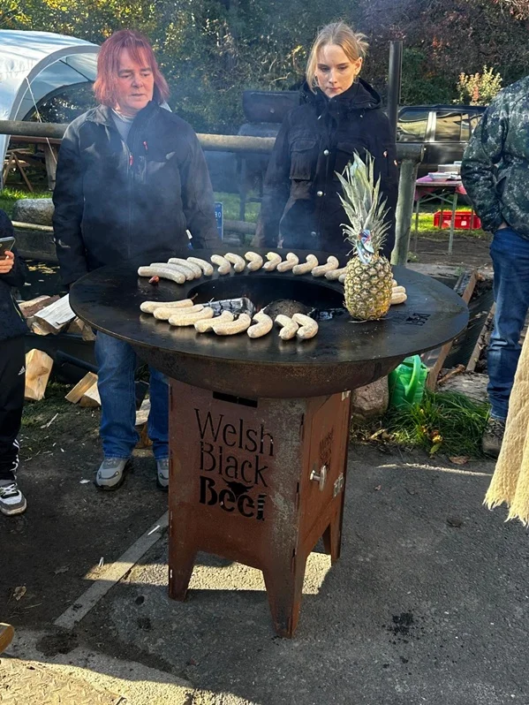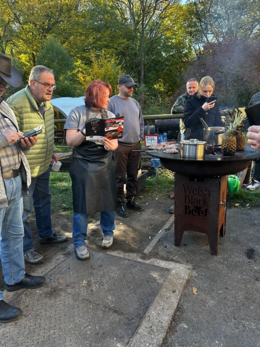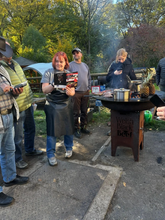 Zum Mittagessen gab es Gulasch, Würstchen und Burger, von den eigenen Tieren und selbst gemacht! Im sehr schönen Hofladen haben sich Interessierte dann mit verschiedenen Mehlsorten und Welsh Black Wurst eingedeckt.