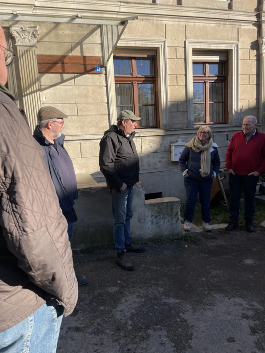 Zu Beginn des Treffens hat uns Markus über die Geschichte der Obermühle informiert, dann gab es Kaffee und Schnittchen in der Mühle mit dem Geräusch des Wasserrades als „Hintergrundmusik“. Anschließend ein Spaziergang zu den Jungbullen.